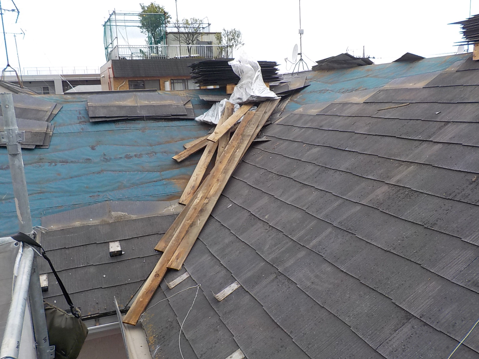 屋根材と屋根の下地がかなり傷んでいる場合は葺き替えをおすすめしています。