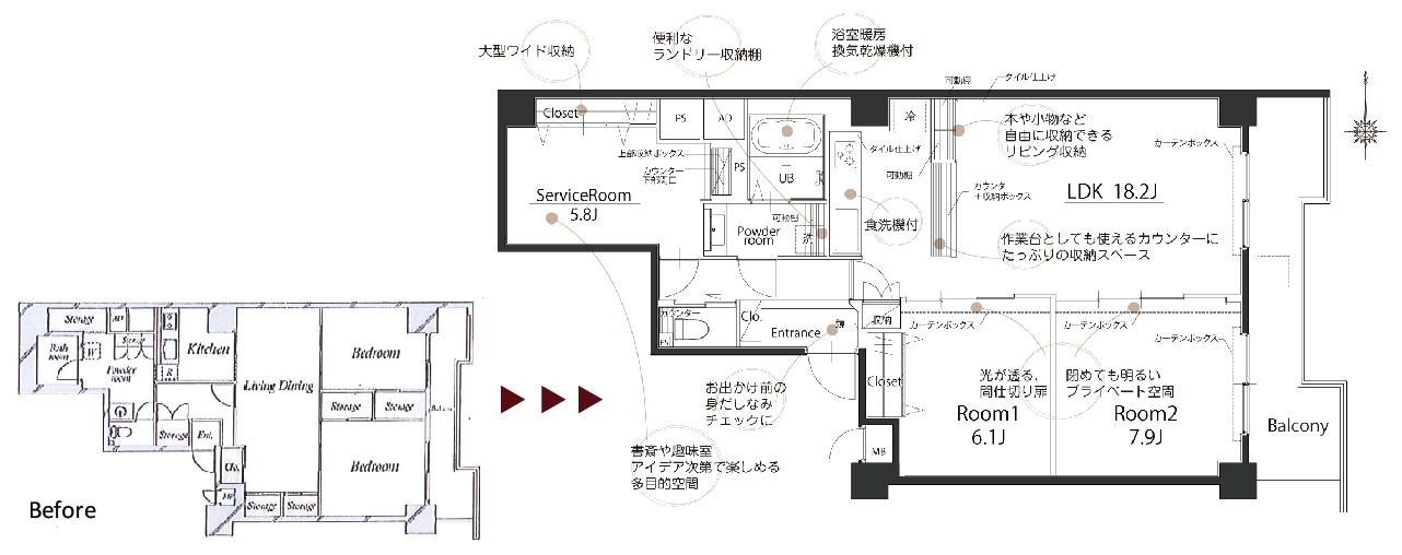 - 間取り変更LDKトイレ洗面化粧台バスルームフローリングクロス照明器具