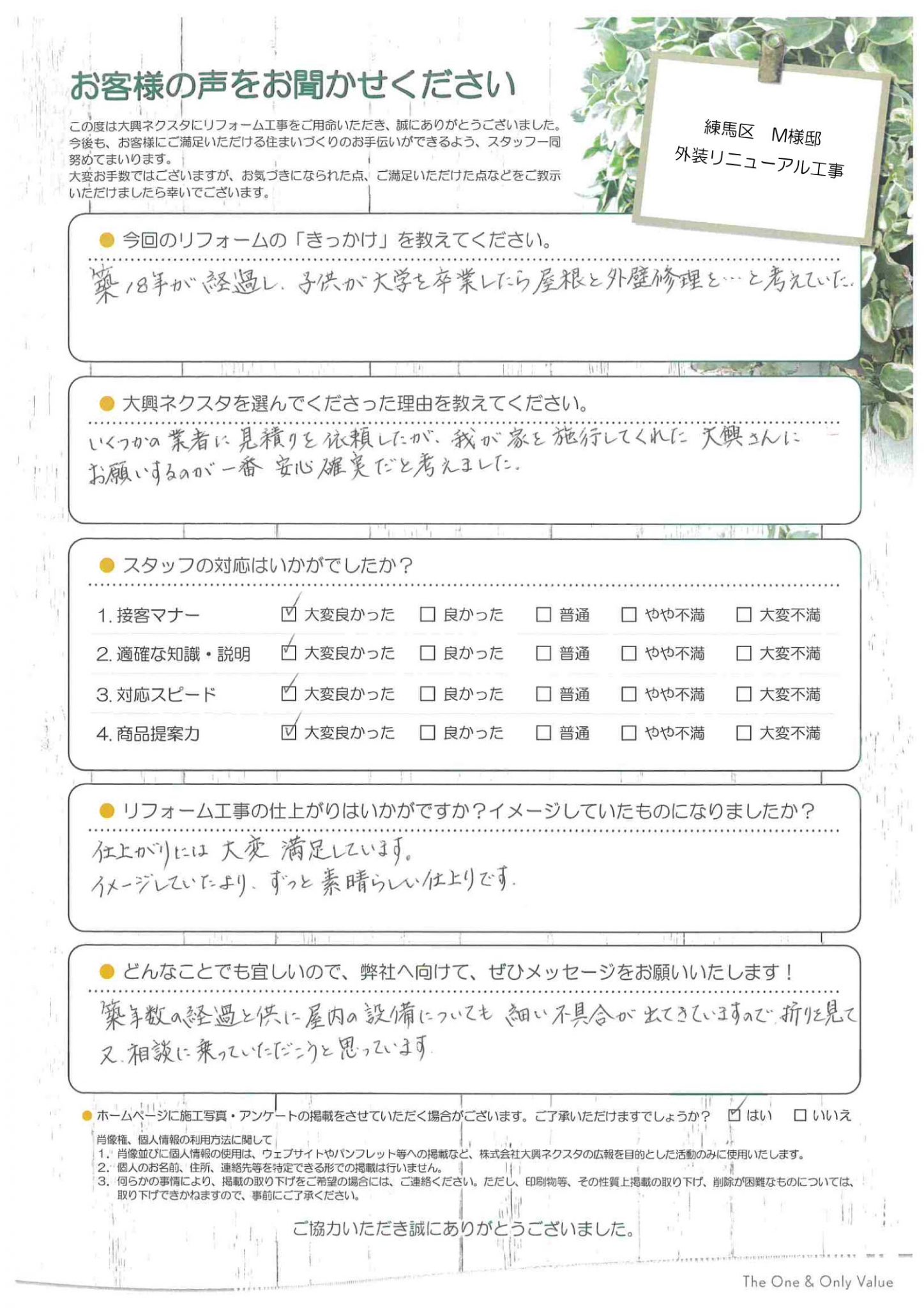 いくつかの業者に見積を依頼したが、我が家を施工してくれた大興さんにお願いするのが一番安心確実だと考えました。