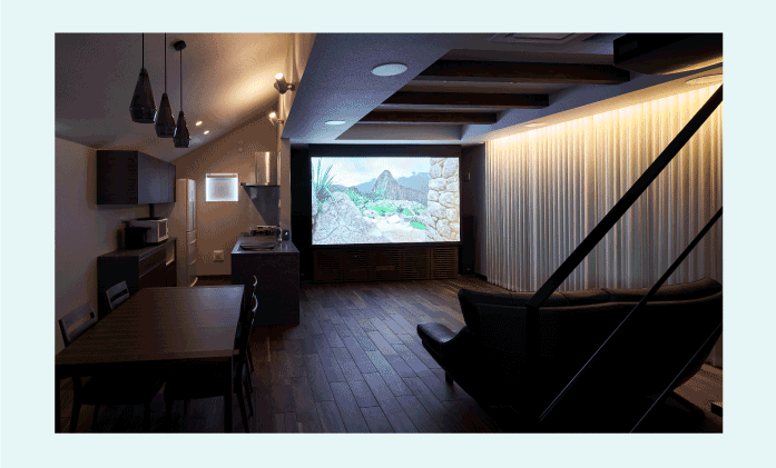 ・大好きな映画が楽しめるホームシアターを備えたリビング