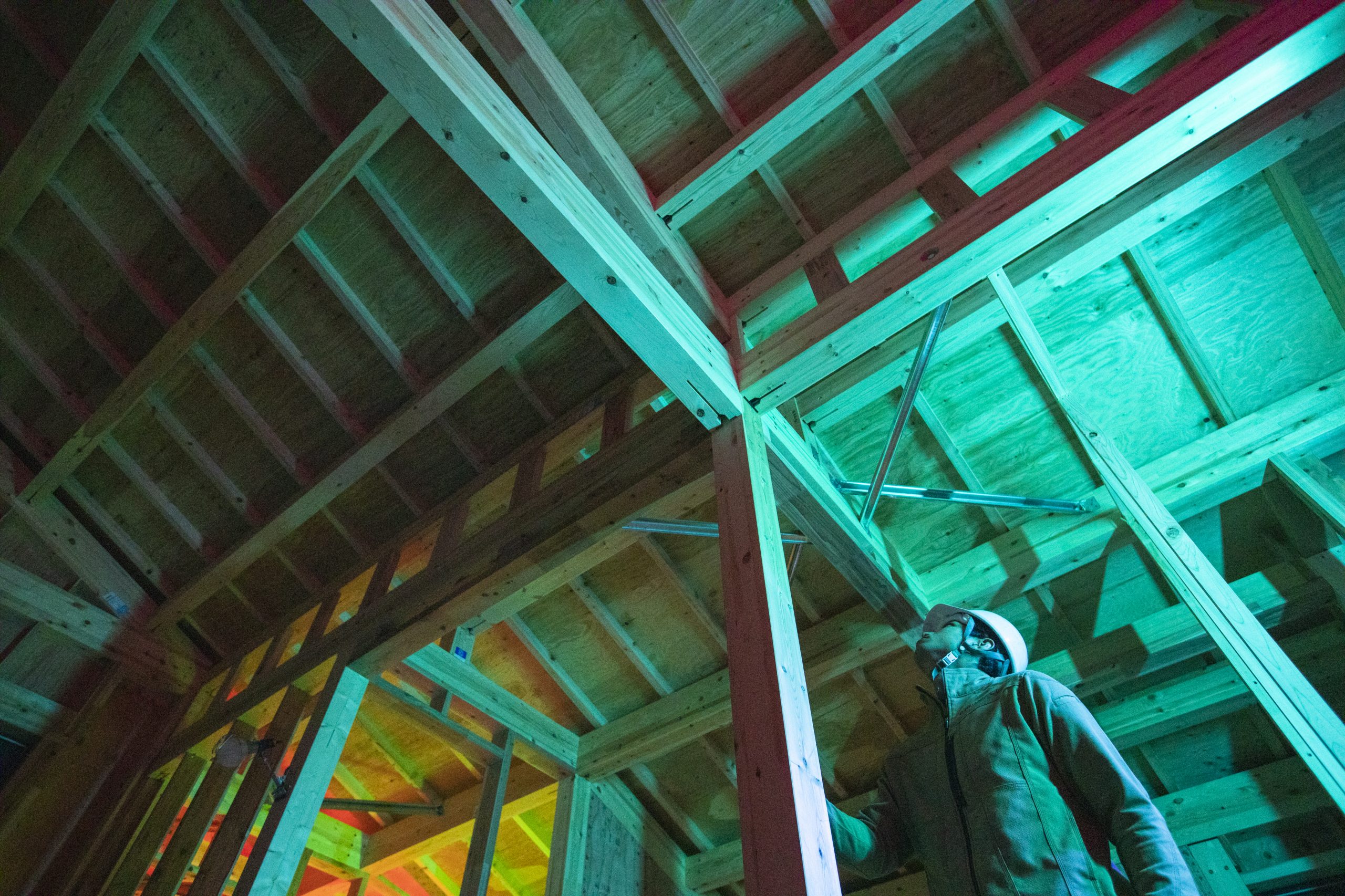 木造ラーメン工法では、木製の柱と梁を特殊な金物を使って一体化させることで、水平力に耐えられるフレームを作ります。そのため耐震性を損なうことなく大きな開口や大空間を木造住宅で実現できるのです。