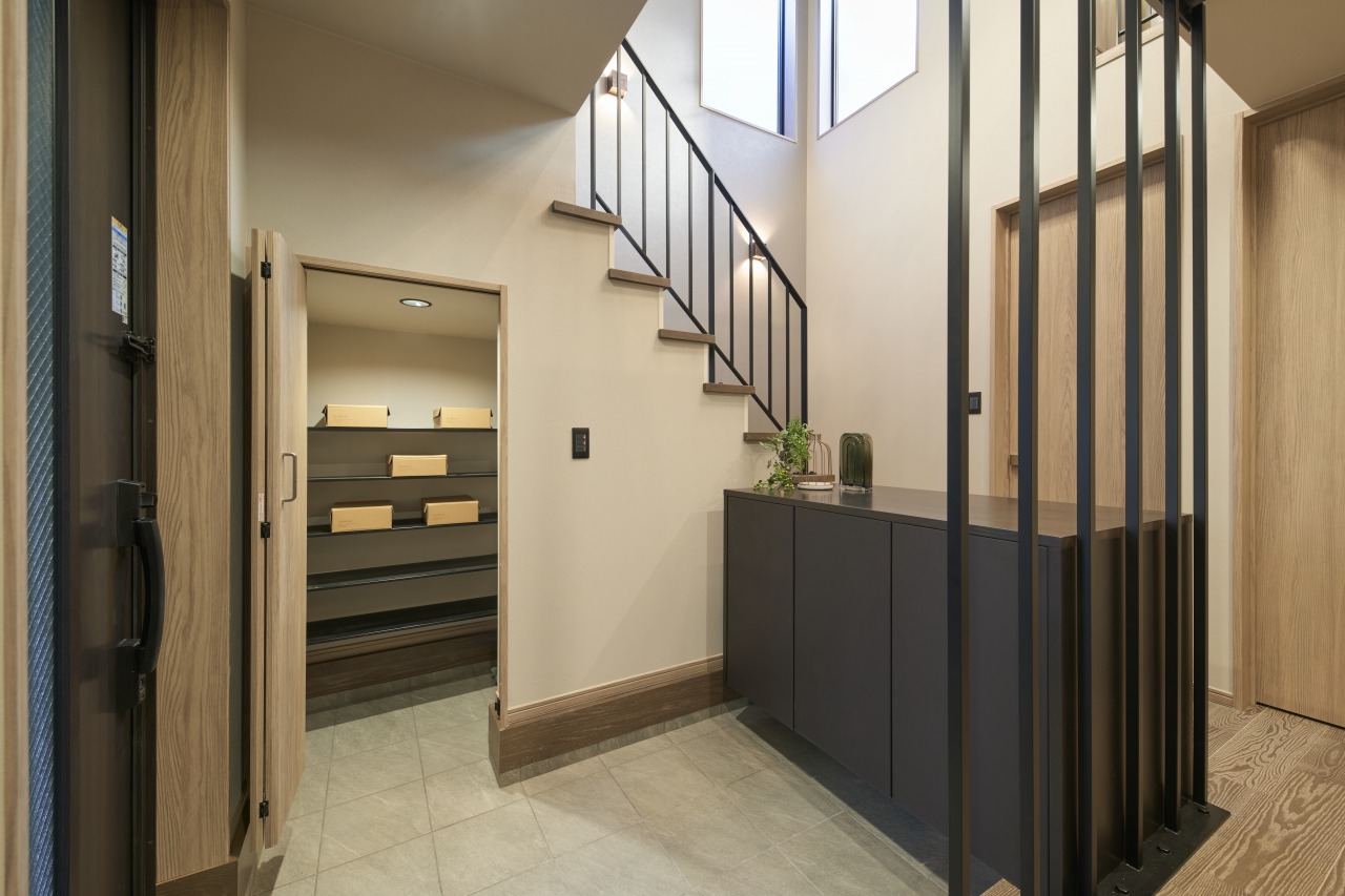 シーズンオフのブーツや雨具、趣味のアウトドア用品など、室内に置きたくない荷物の一時置き場としても役立ちます。スタイリッシュな玄関を維持するのに大型の収納は欠かせません。