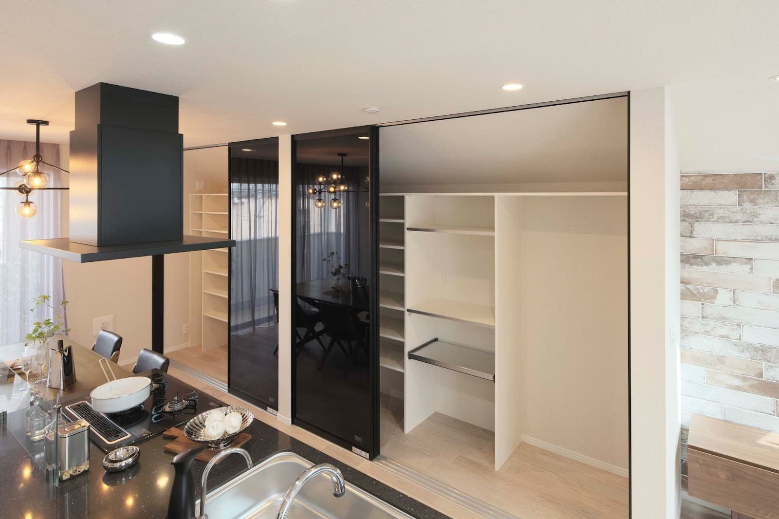特にキッチン周りはモノが溢れやすい場所です。料理が好きでたくさんの調理器具や器を持っている方は、大きな背面収納があると便利ですね。