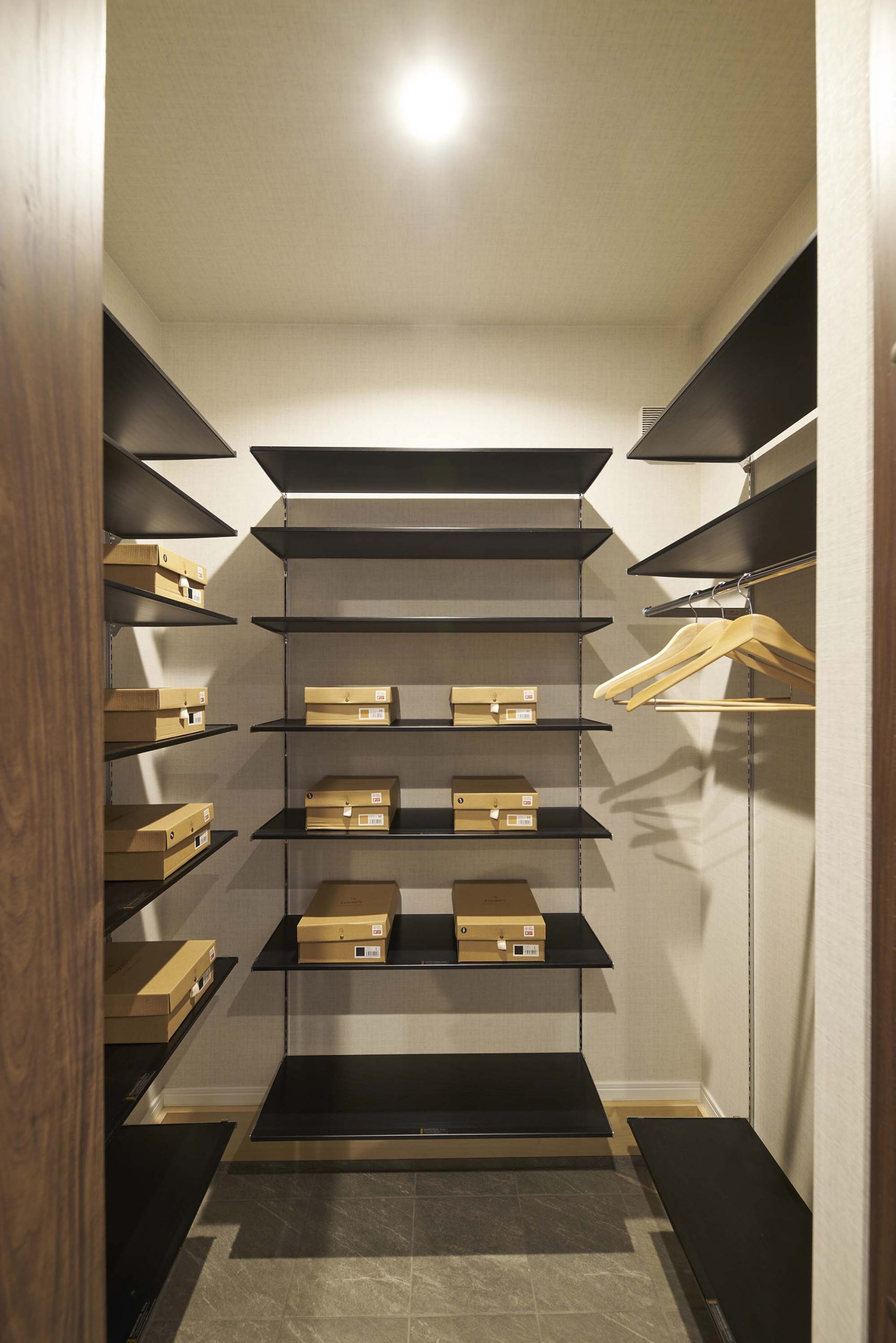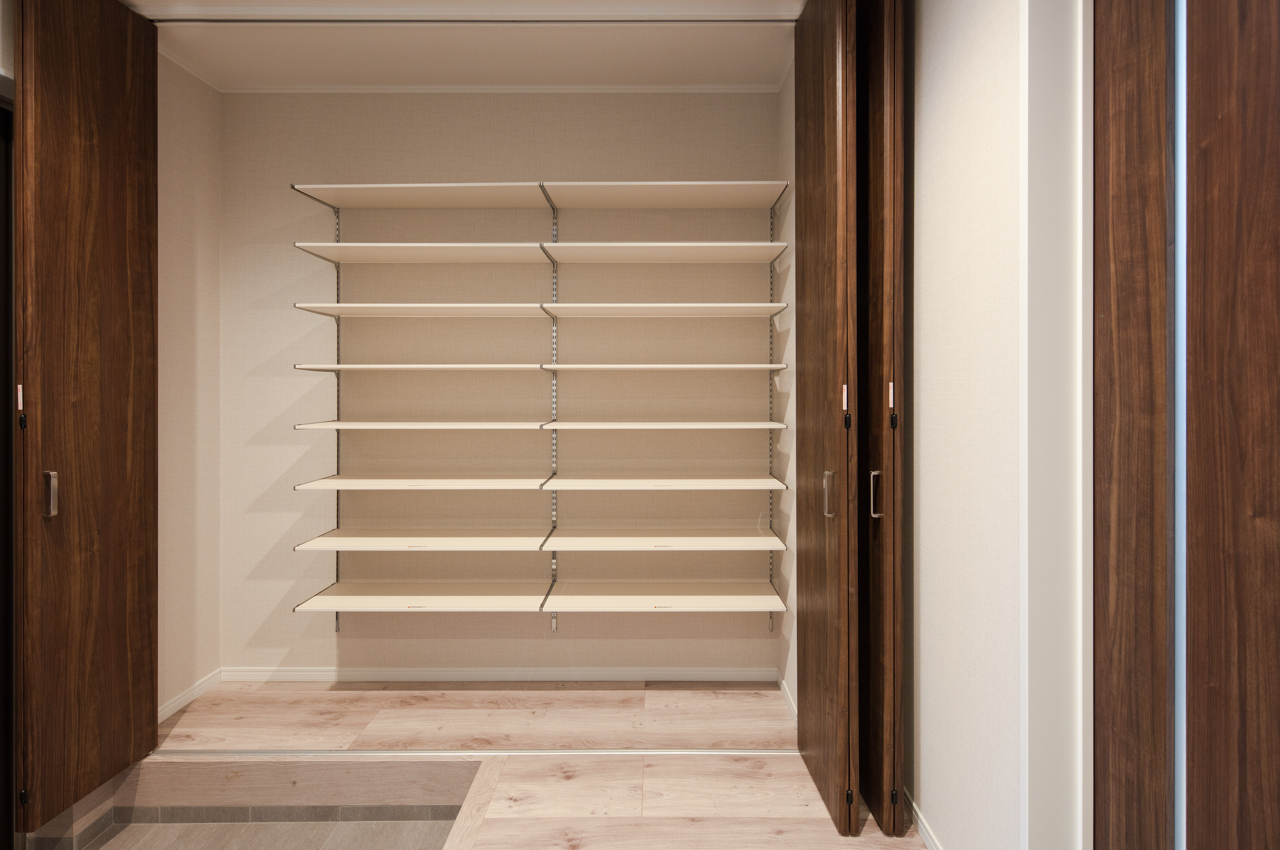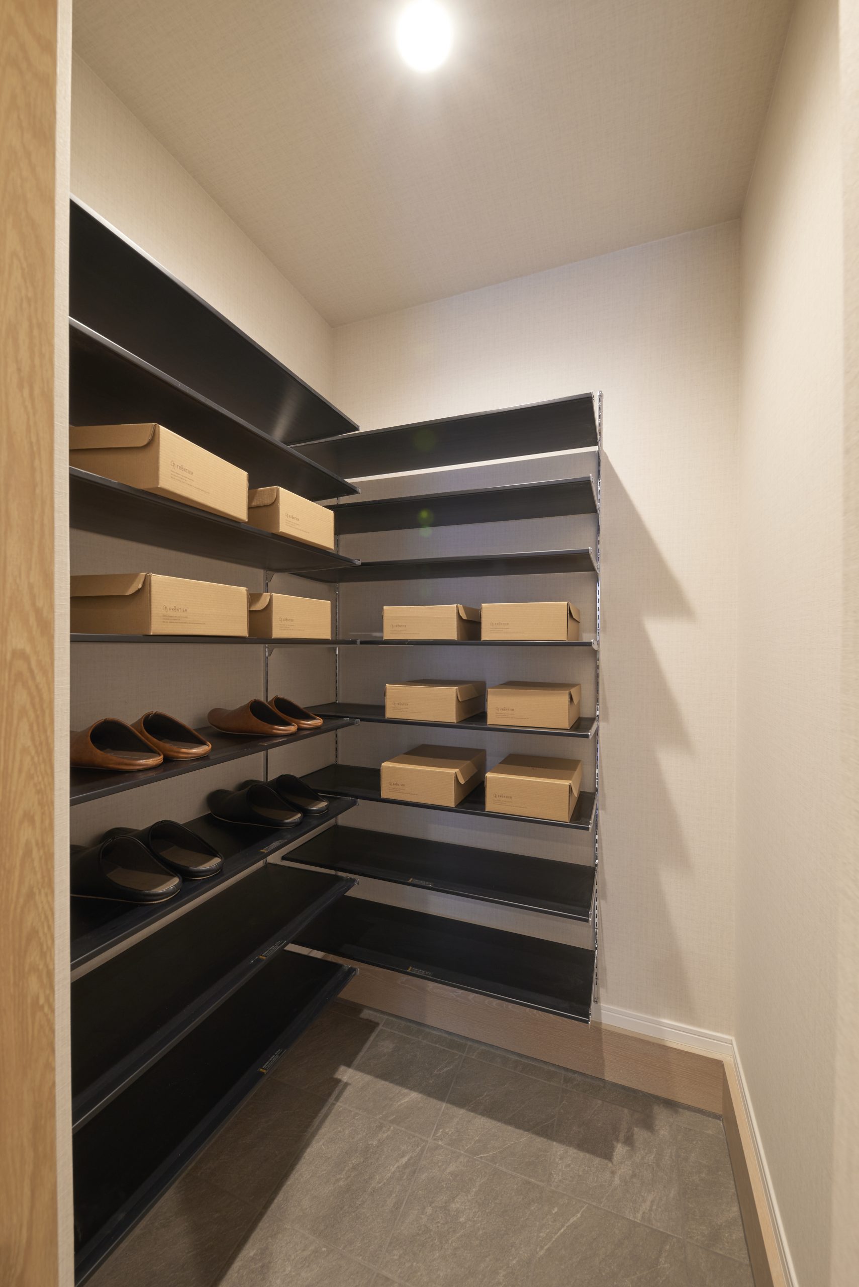 靴のまま入れる大容量の収納スペース。これだけの大きさがあれば散らかりがちな玄関もスッキリ片付きますね。