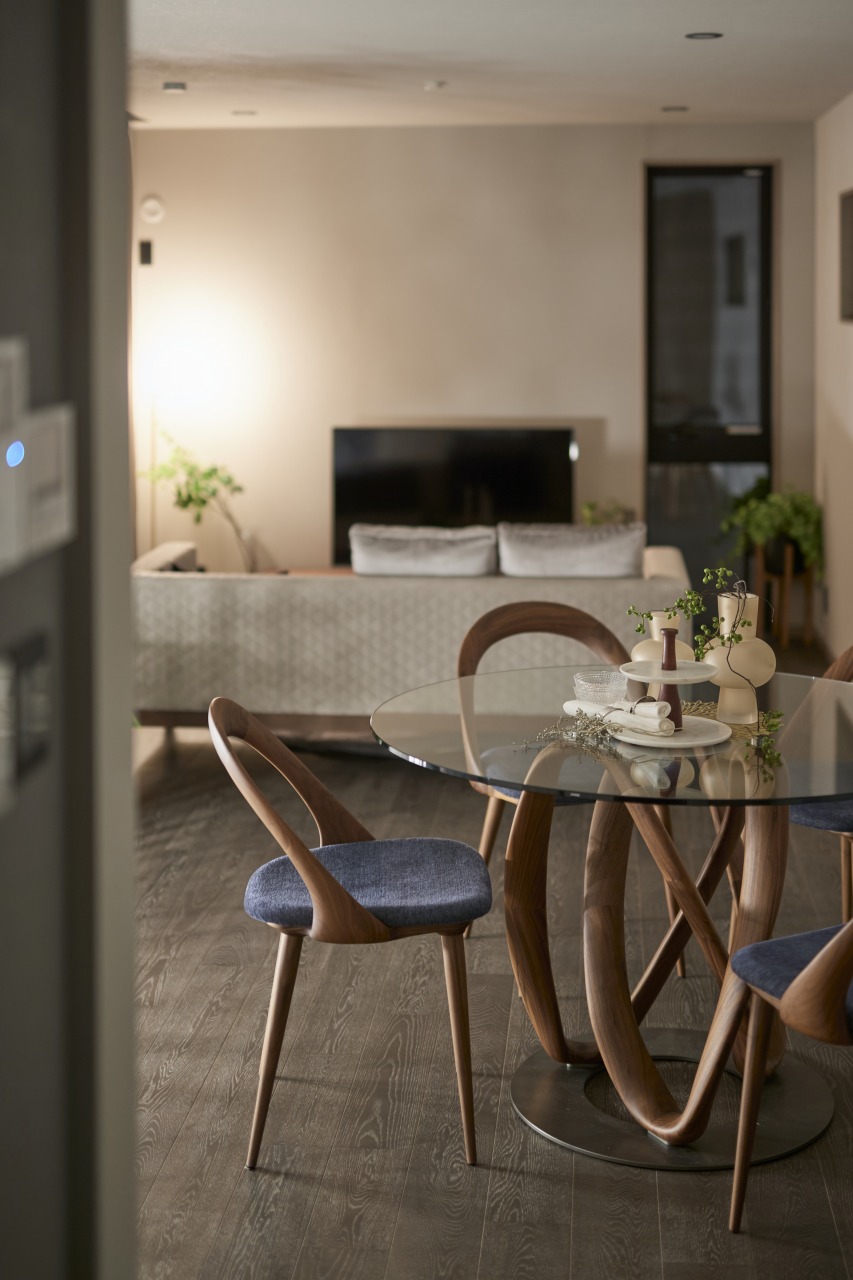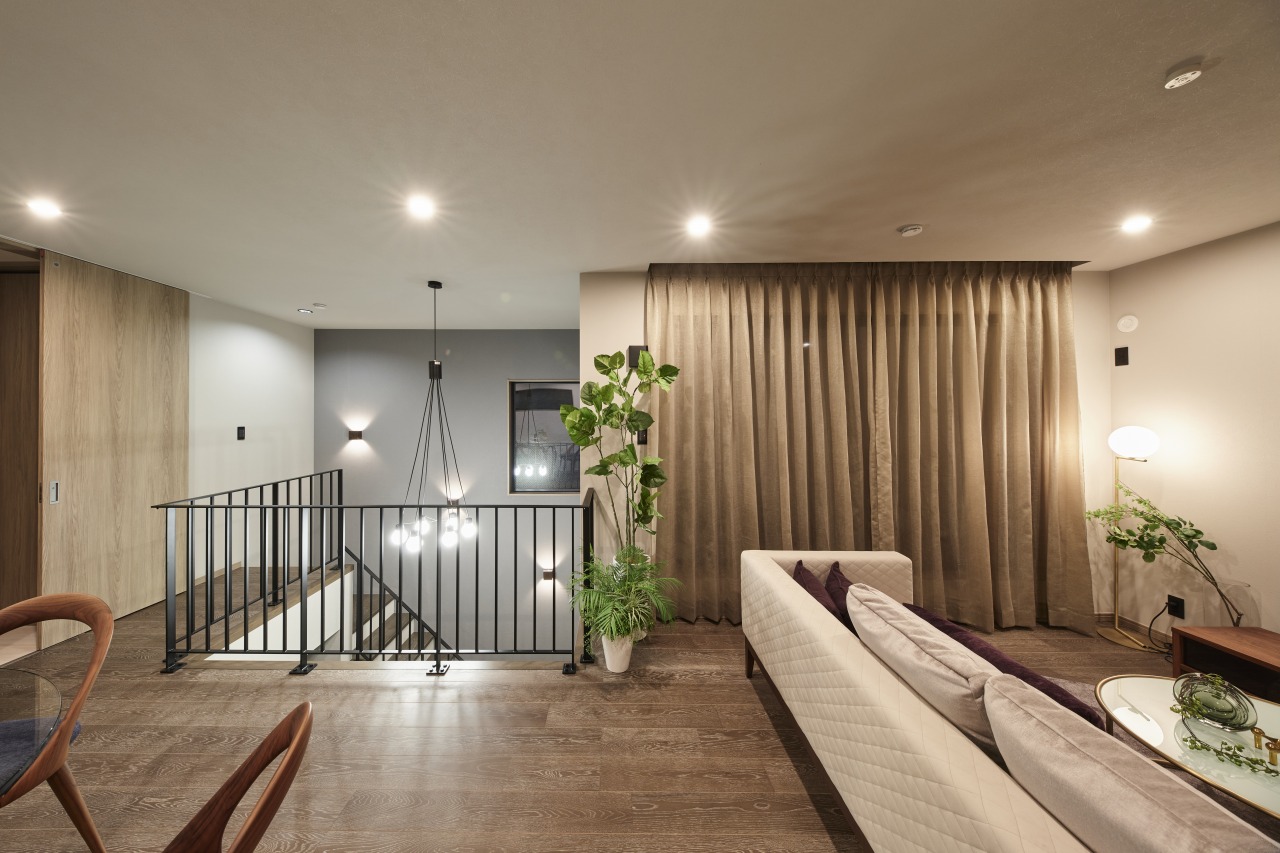明るさと風をベースに窓を配置。 採光を確保しながら、床材もブラウン系で落ち着きを演出。 鉄骨階段との相性も良く、一体感を感じさせるデザイン設計。