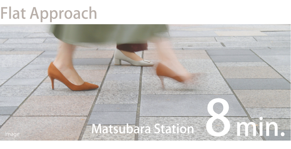 最寄り駅の東急世田谷線「松原」駅まで徒歩8分。歩きやすいフラットアプローチが魅力的。