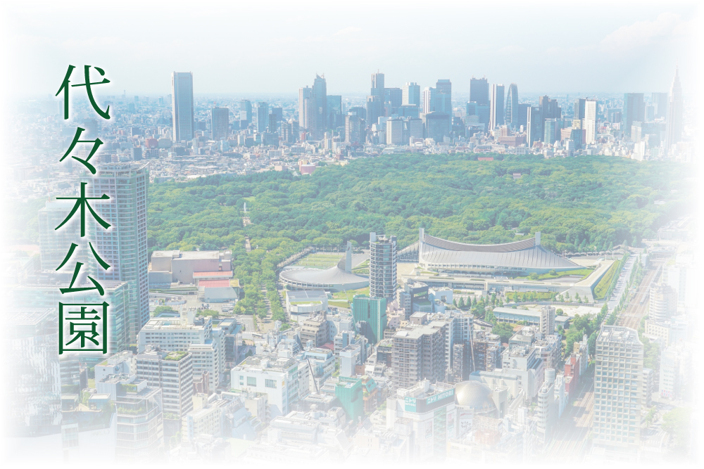 • かつては陸軍代々木練兵場だったこの場所は、東京オリンピックの選手村を経て公園となりました。開園当時はまだ若かった木々も、今はすっかり成長し、隣接する明治神宮の木々とともに緑濃い森へと深まり、“水と緑”に恵まれた公園として生まれ変わりました。