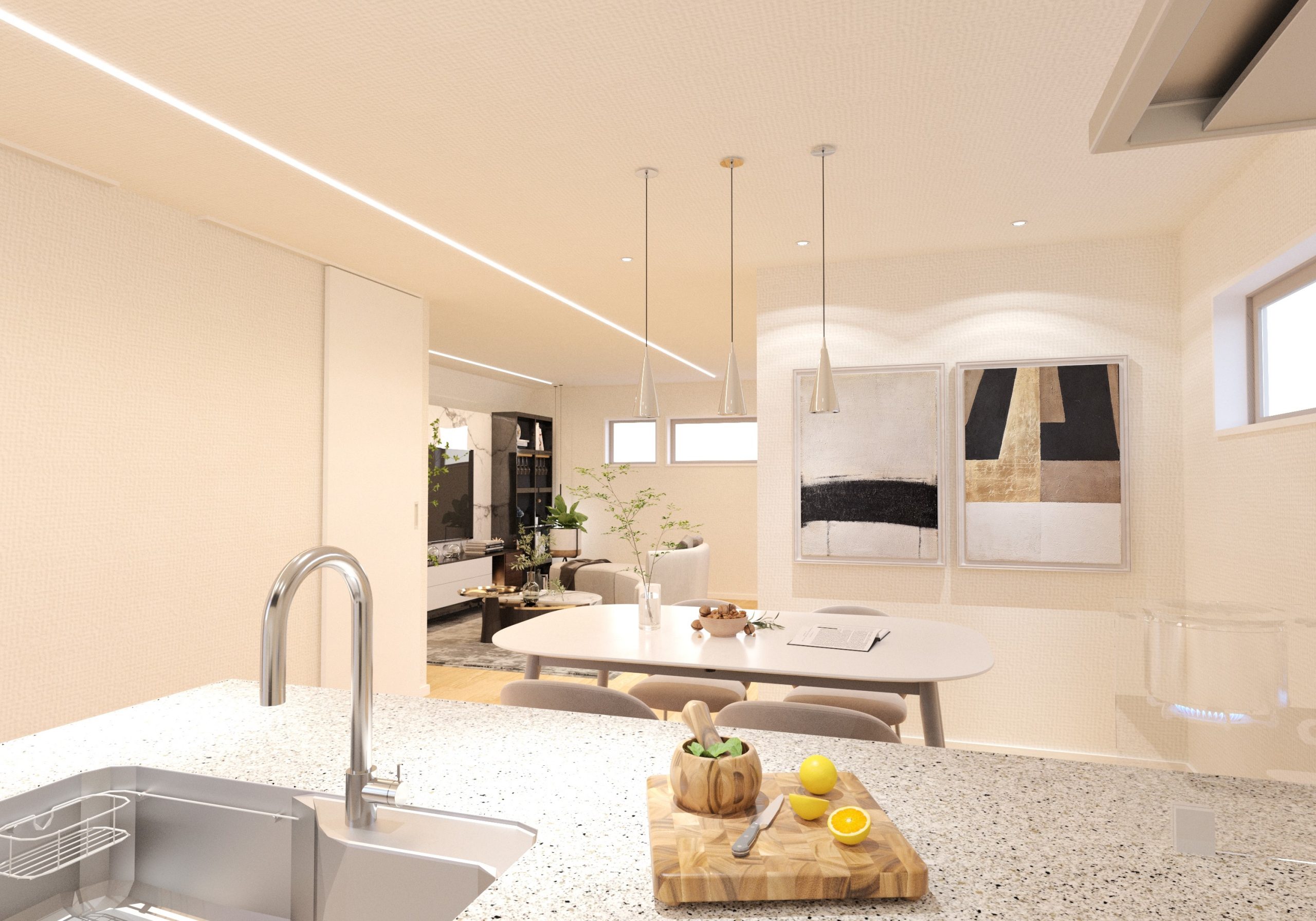 「日本住宅の空間や素材感が好きだった」と言うは播氏は、壁が増え、木の温もりが消え、日本の家らしさが失われていく傾向の中で、現代の技術力による「日本住宅の空間の再生」を構想します。そして1995年、阪神淡路大震災が発生します。