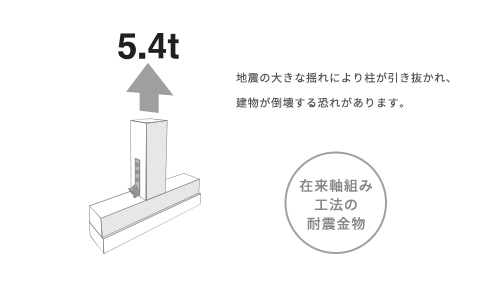 揺れに対する強度が低く、大きな地震で柱が引き抜ける恐れがあります。